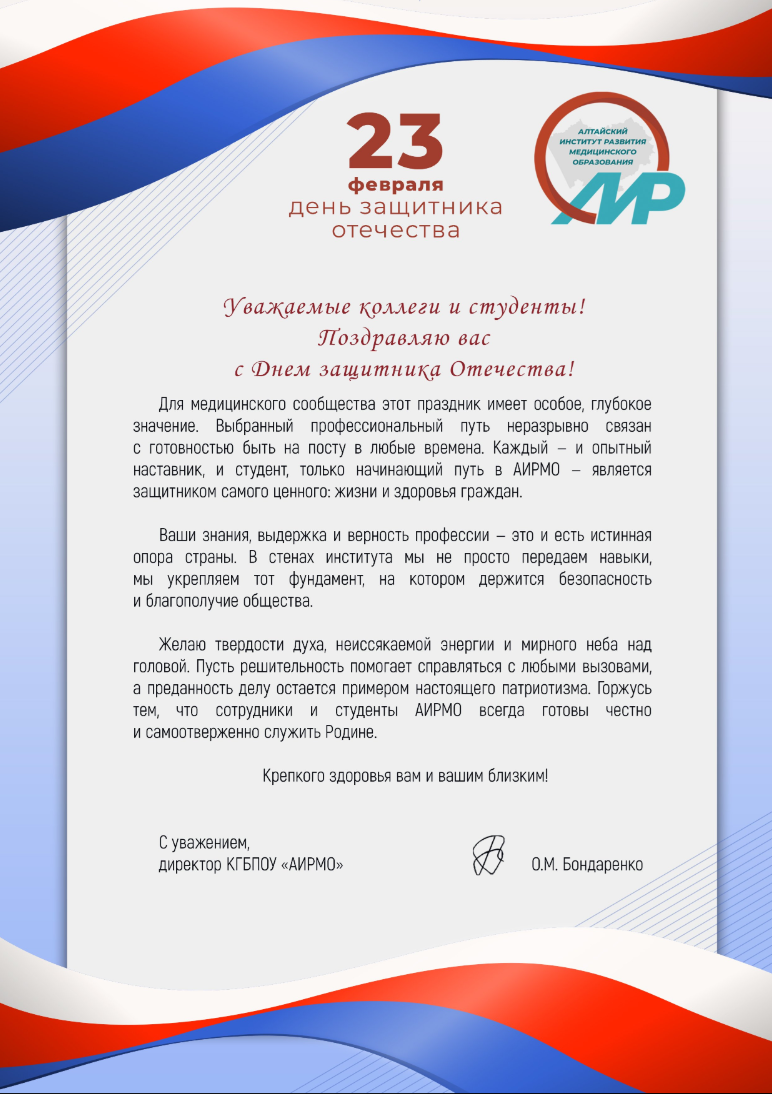 В феврале актив студентов Каменского филиала АИРМО, совместно с советником директора по воспитанию подготовили и провели среди студентов 1-4 курса специальностей Сестринское и Лечебное дело цикл мероприятий, посвященных Дню защитника Отечест ... Читать дальше » |