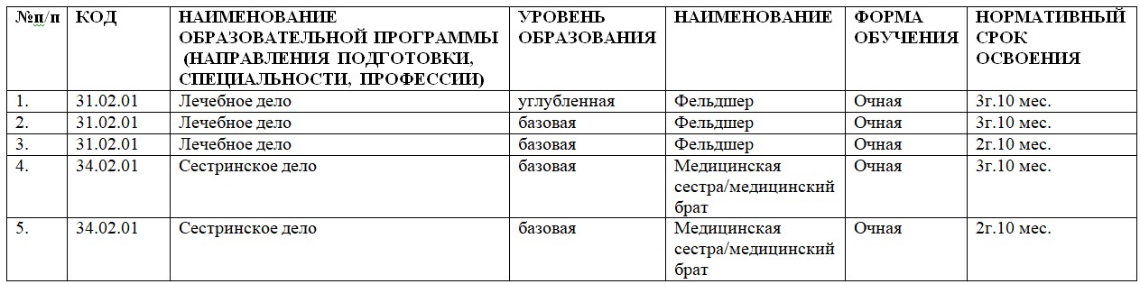 Перечень учебных предметов, курсов, дисциплин (модулей), предусмотренные образовательной программой 31.02.01 Лечебное дело