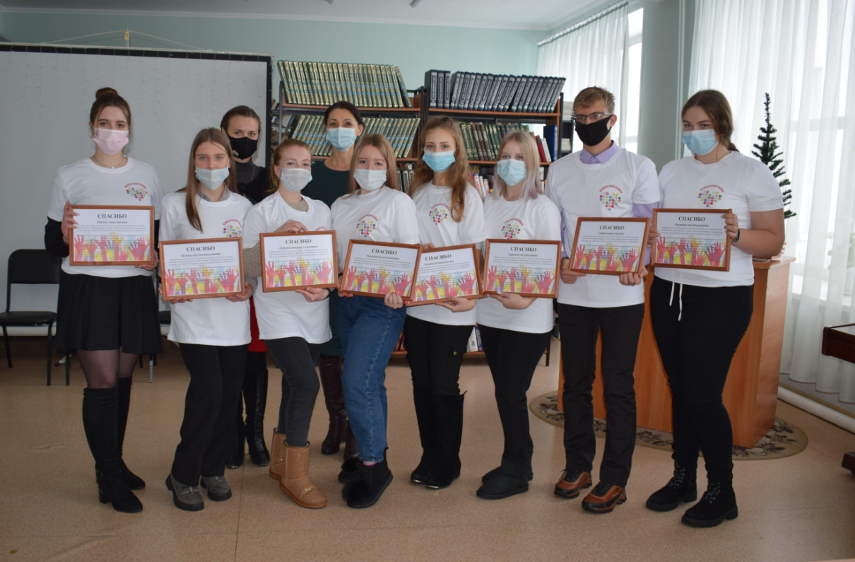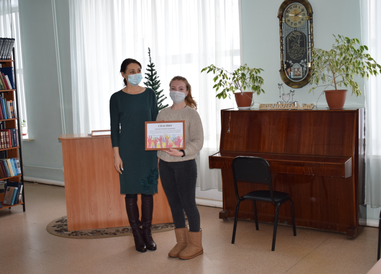 В честь праздника Комитет Администрации Каменского района Алтайского края по Культуре и Делам Молодежи в лице Кабашовой Ларисы Николаевны и Бердниковой Елены Павловны собрали в Центральной районной библиотеке имени М.Ф. Борисова самых активных волонтеров города и района.