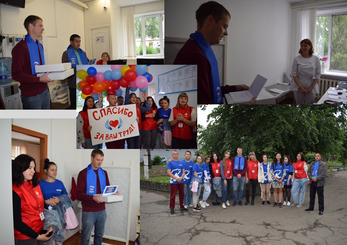 Студенты Каменского медицинского колледжа совместно с депутатами партии Единая Россия Денисом Колесниковым и Алексеем Гореявчевым поздравили с Днем медицинского работника сотрудников Взрослой поликлиники КГБУЗ "Каменская МБ".