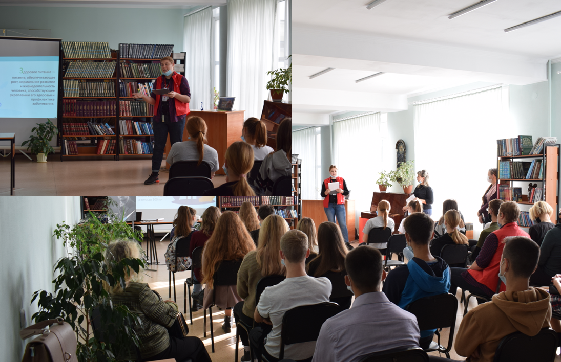 14 октября волонтеры-медики Дмитрий Кисурин и Александра Балабаева приняли участие в городском мероприятии "Здоровье - путь к успеху" в городской библиотеке для учащихся городских школ. Они рассказали о правильном питании и влиянии алкоголя на организм человека.